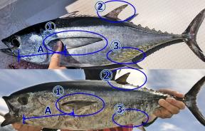 クロマグロとコシナガマグロの見分け方画像です。